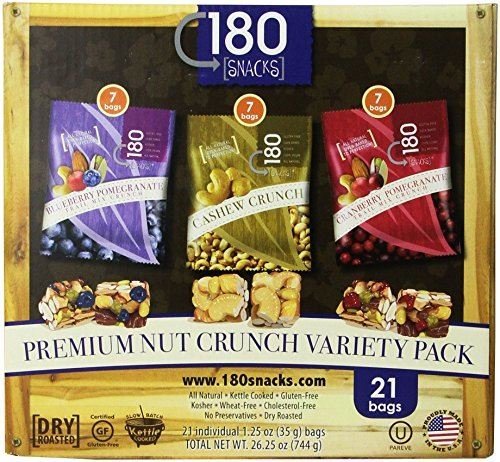 - Product Name: 180 Snacks Nut Crunch Variety Pack, 21 individual bags (7 Blueberry Pomegranate, 7 Cashew Crunch, and 7 Cranberry Pomegranate)